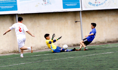| Trận đấu thứ hai trong ngày là giữa hai đội Viettel (áo trắng) - T.Ư Đoàn (áo xanh). |