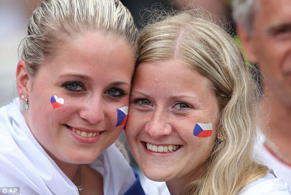 Hai cổ động viên nữ của Séc rạng ngời.