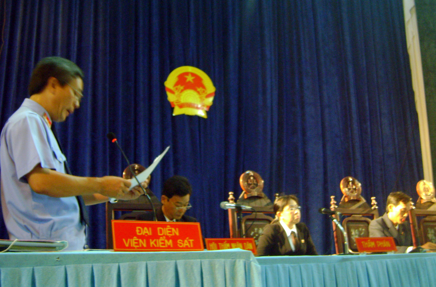 Lúc 7 giờ 20 ngày 29/6, Ông Trần Trọng Nhân, Chánh tòa hình sự TAND tỉnh Cà Mau làm chủ tọa, tuyên bố khai mạc. Đại diện Viện KSND tỉnh Cà Mau giữ quyền công tố tại phiên tòa là ông Nguyễn Văn Dũng, kiểm sát viên Viện KSND tỉnh Cà Mau.
