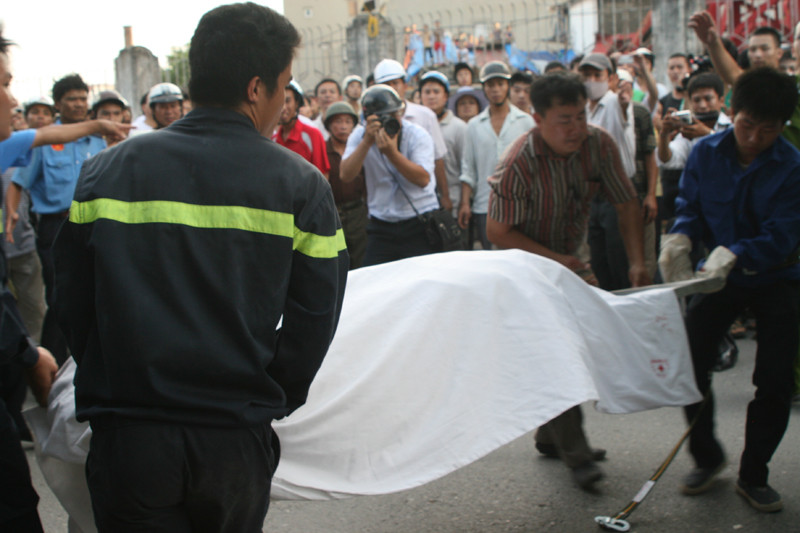 Đưa xác nạn nhân cuối cùng tới bệnh viện Ảnh: Minh Đức