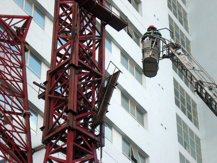 Tới 16 giờ 15 phút, xe thang của cảnh sát PCCC đã tới hiện trường để cứu hộ và đưa một phần thi thể của nạn nhân bị mắc kẹt trên cần cẩu xuống. Tuy nhiên mọi nỗ lực vẫn bất thành.