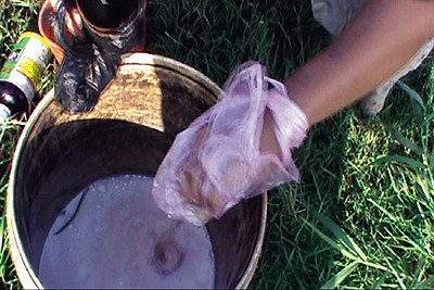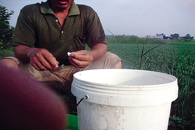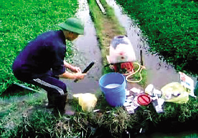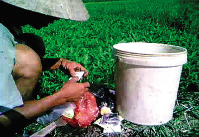 Vạch mấy bao tải lộ ra một thùng gỗ nhỏ, thò tay lấy ra một chai (gần giống chai bia Sài Gòn loại nhỏ), xách theo "bộ đồ nghề" ra ruộng rau. S. đổ vào thùng vài chục CC, rồi cho thêm vào đó nửa gói muối, múc nước khuấy đều, sau đó xịt đều lên mảnh ruộng rau mà ngày hôm sau đến lịch thu hoạch.