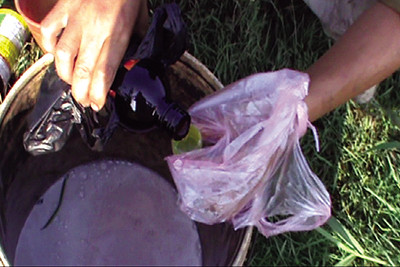 Về đến ruộng, H. bỏ vào thùng một gói có chữ: mềm cọng, mập cọng, trắng cọng, và đẹp lá rồi bỏ thêm ½ viên "độc" vào thùng rồi chế nước. Lấy ca khuấy cho tan thuốc, cứ thế H. múc nước trong thùng tưới đều lên ruộng rau.