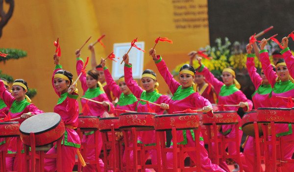 Màn trống hội Thăng Long mở màn cho chương trình văn nghệ