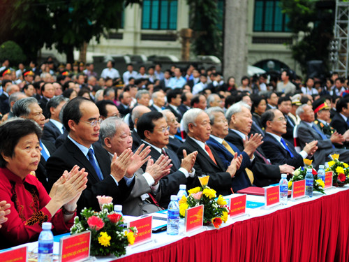 | “1000 năm trước, theo Đại Việt sử lược, thành Đại la có chu vi gần 2000 trượng (khoảng 6000m), với hơn 5000 mái nhà. Hà Nội hôm nay gồm 29 quận, huyện, thị xã, 577 xã, phường với diện tích 3344 km2, dân số hơn 6,5 triệu người, mang trong mình những tiềm năng, sức mạnh tinh thần, vật chất to lớn” - Ông Phạm Quang Nghị, Ủy viên Bộ chính trị, Bí thư Thành ủy Hà Nội phát biểu. |