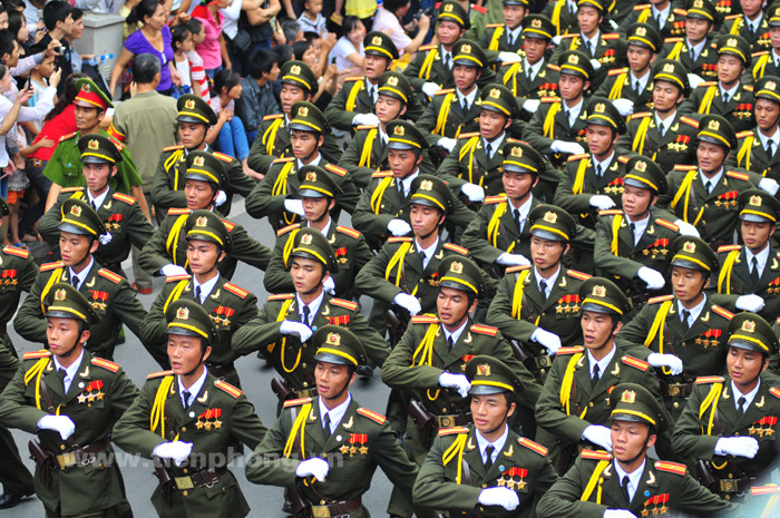 Tiếp đó, lực lượng Công an Nhân dân tiếp bước diễu binh qua lễ đài.