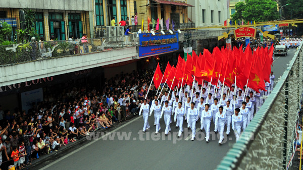 | Diễu hành qua lễ đài. Ảnh: Hồng Vĩnh. |