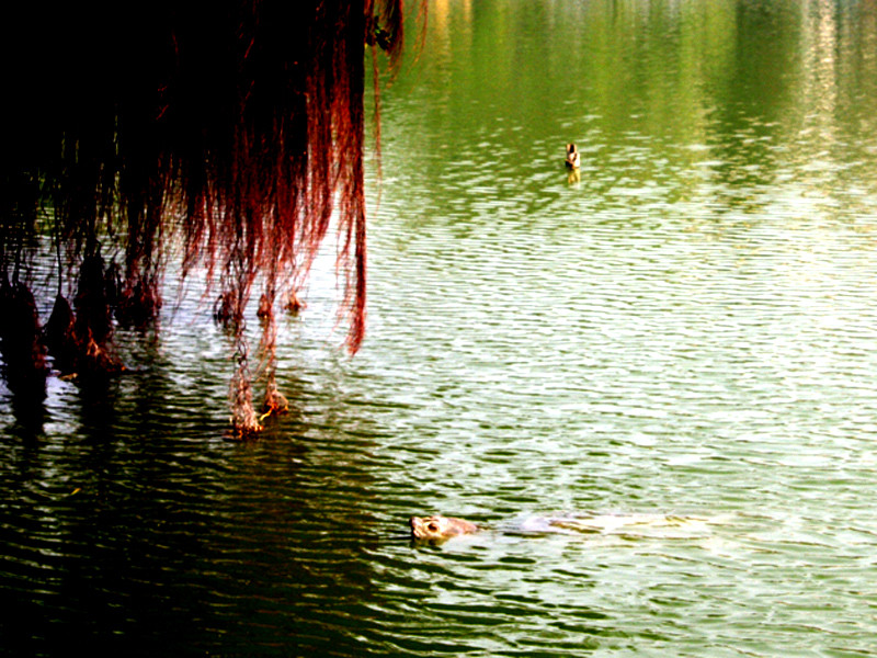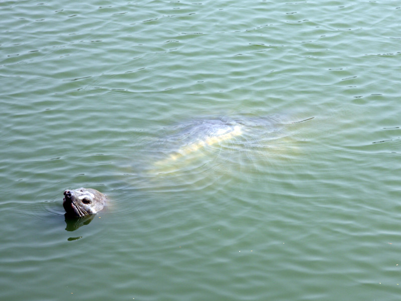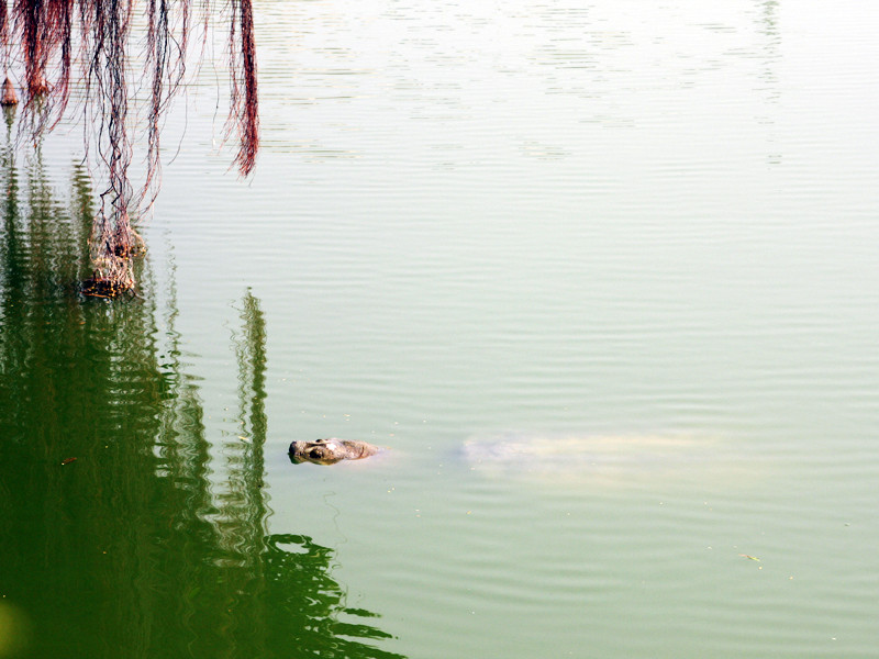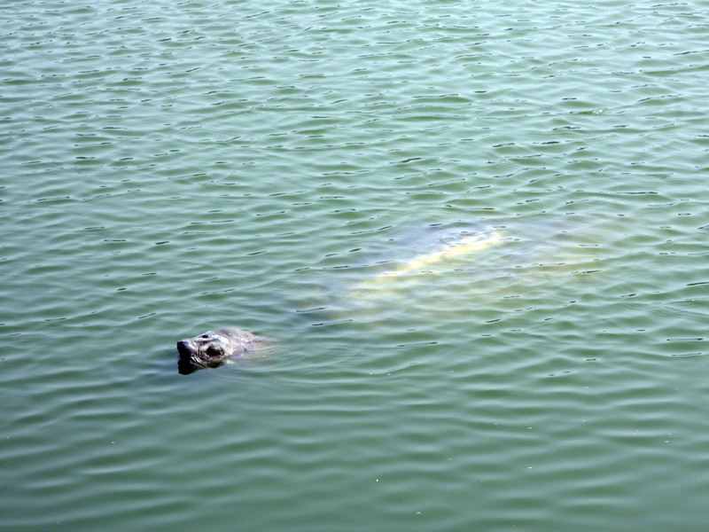 Cụ rùa nhô đầu lên khoảng 3 - 4 giây rồi lại lặn xuống