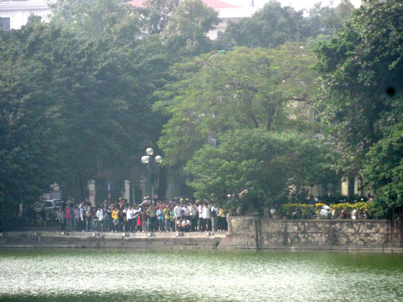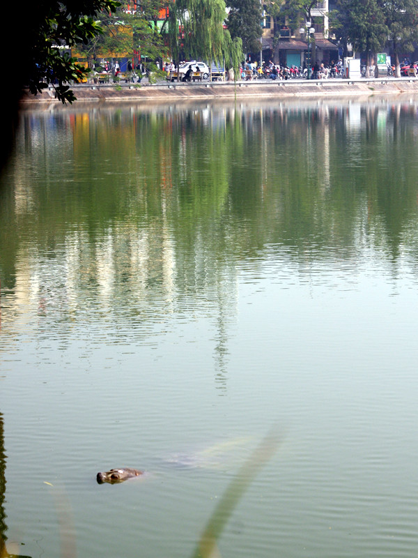 TPO - Khoảng 9h45 sáng nay, 7 - 11, người dân thủ đô và du khách nước ngoài lại được chứng kiến cụ Rùa Hồ Gươm nổi lên mặt nước, ven bờ đối diện trụ sở báo Nhân Dân.