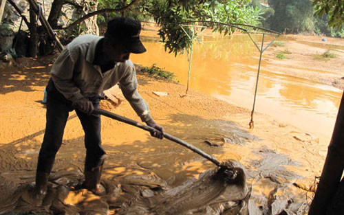 Nhiều đất đai hoa màu của dân bị bùn đỏ phủ dày hàng mét.