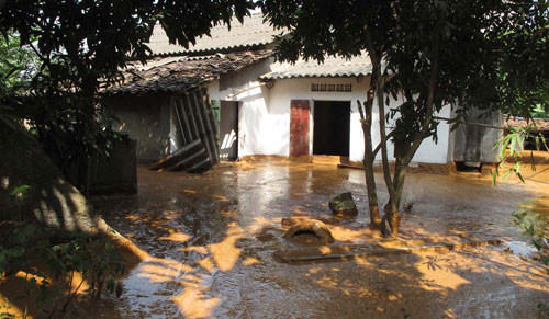 Ngôi nhà của người dân ngập sâu dưới bùn đỏ