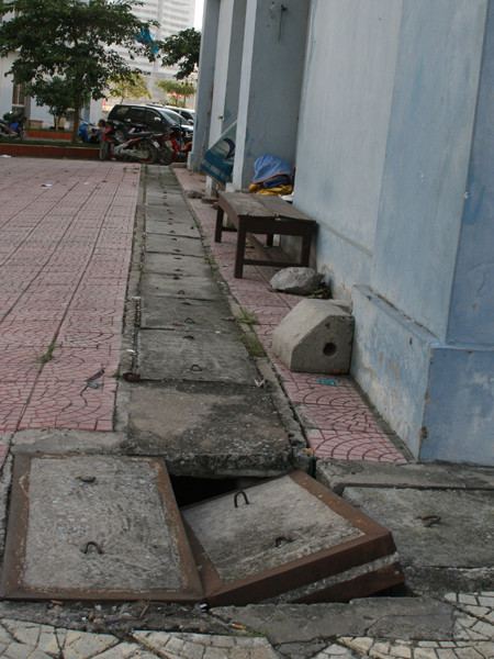 | Các tuyến đường trong khu chung cư Nam Trung Yên, hầu hết hố ga không có nắp. |