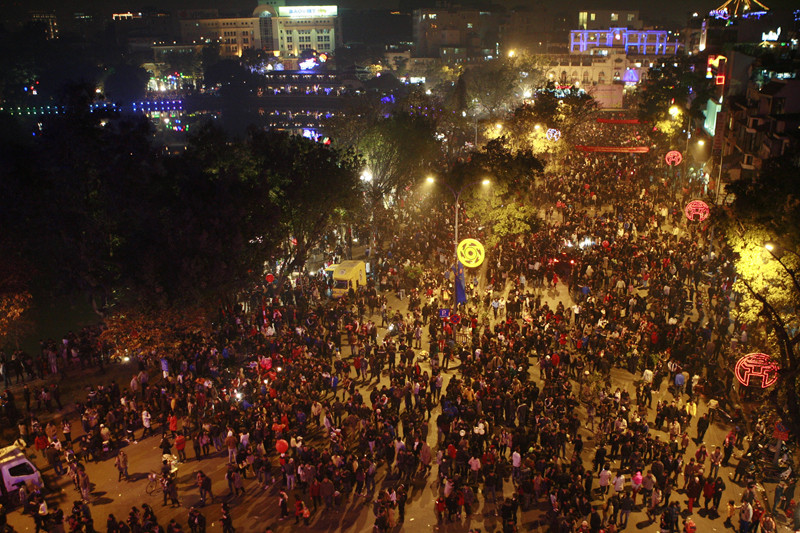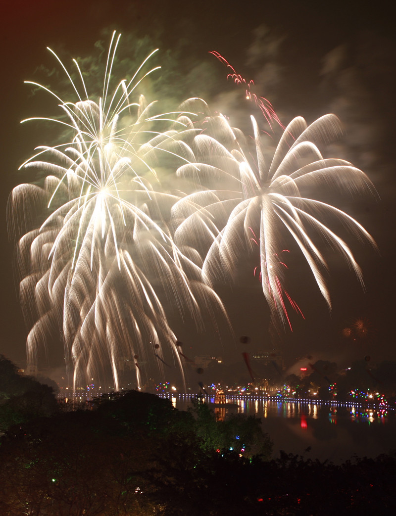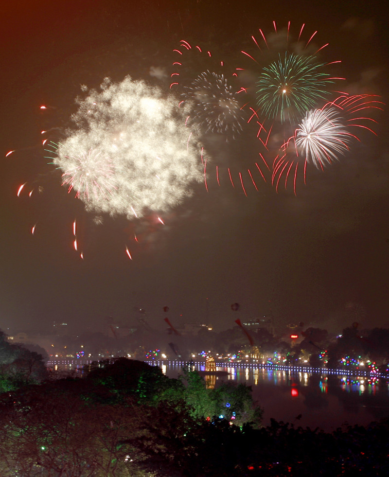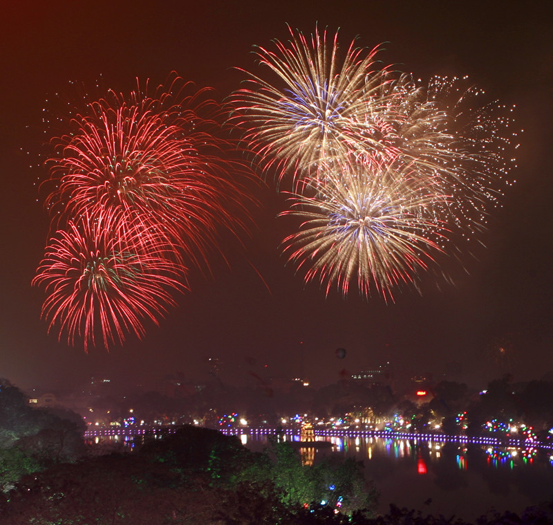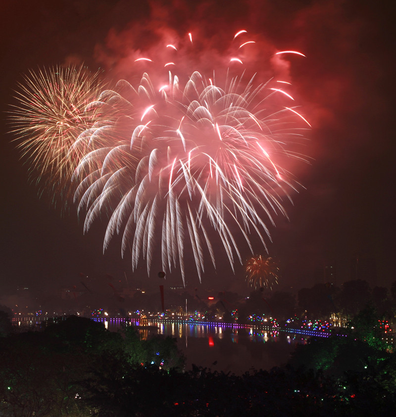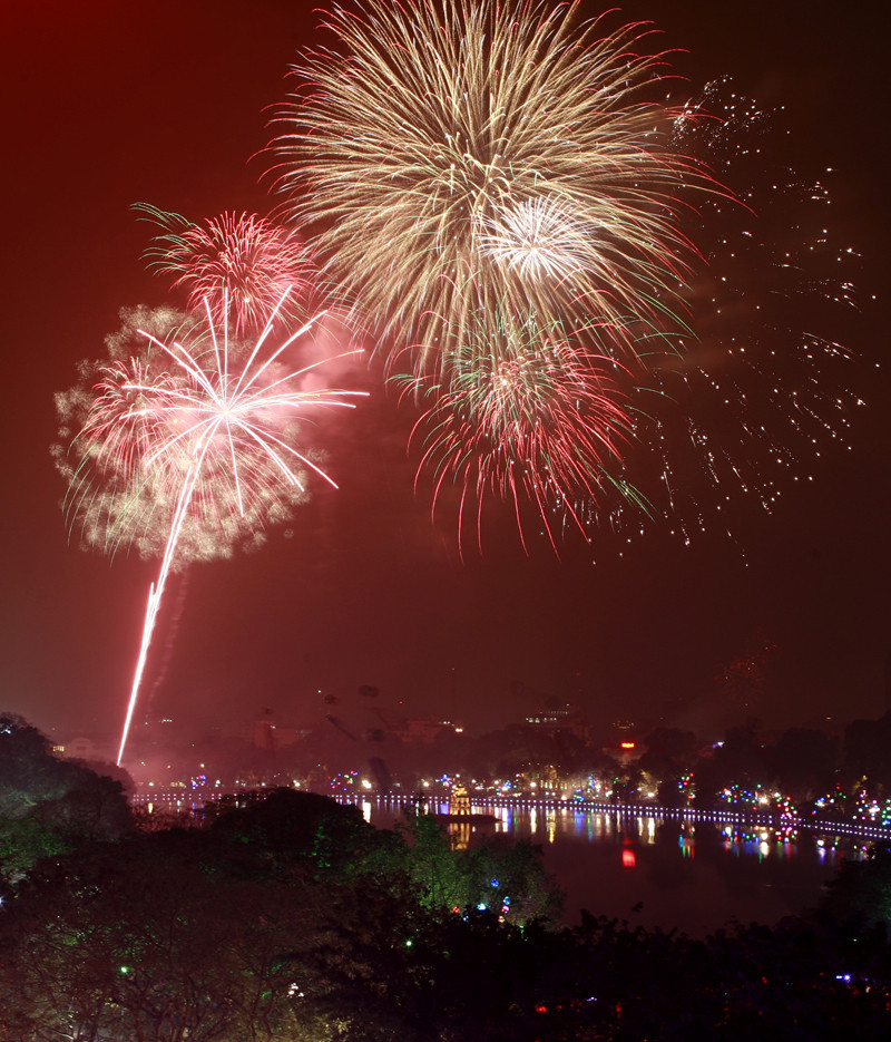 Pháo hoa lung linh hồ Gươm đêm giao thừa