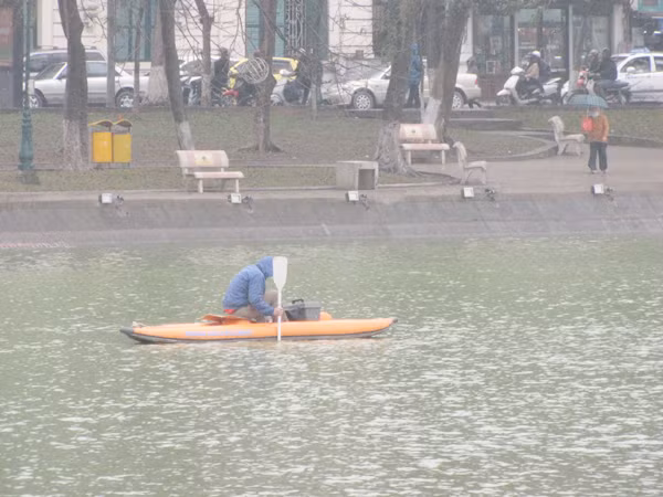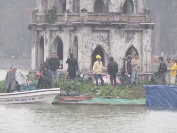 | Cụ nổi một tí rồi lại lặn xuống, di chuyển chậm dần sang phía đường Lê Thái Tổ rồi lặn dần ra giữa Hồ.. |