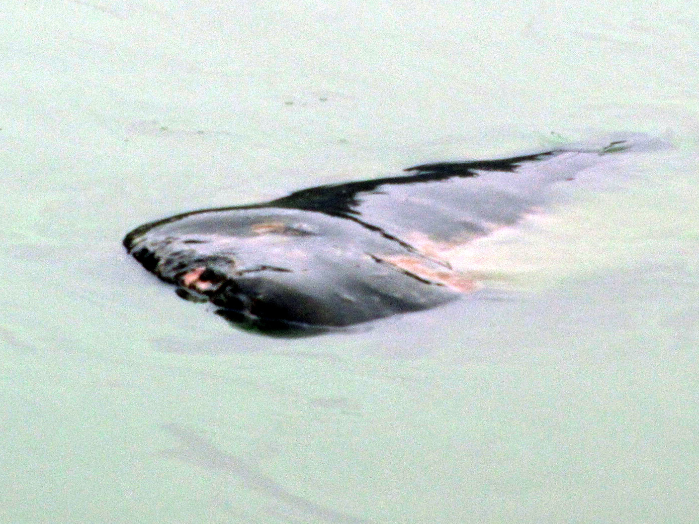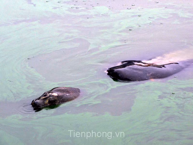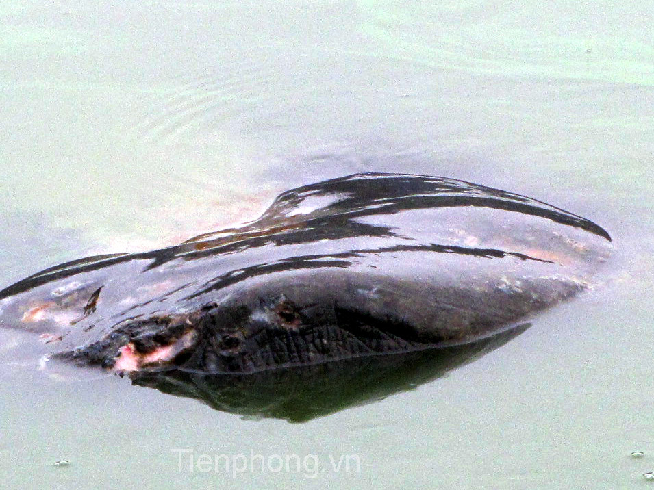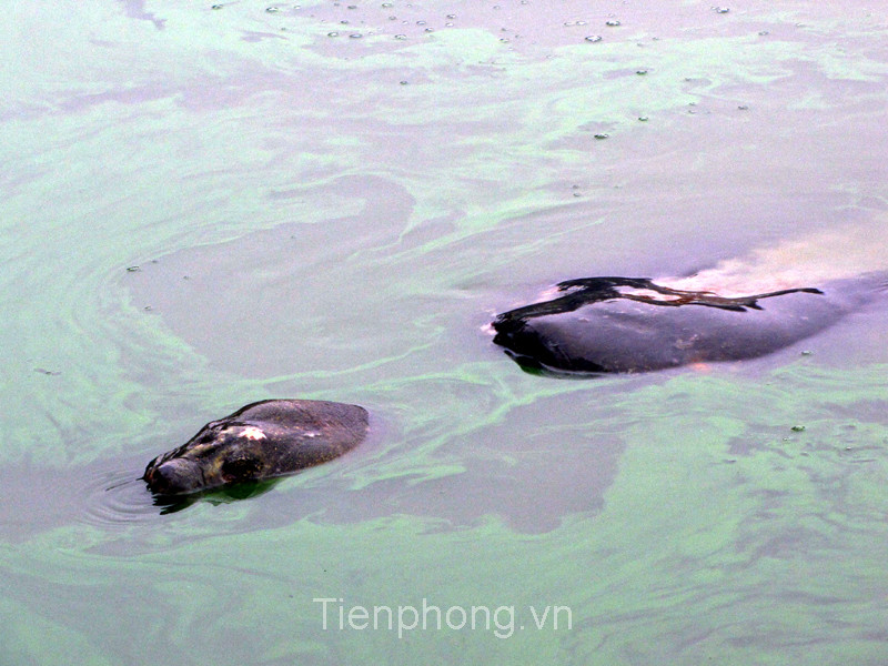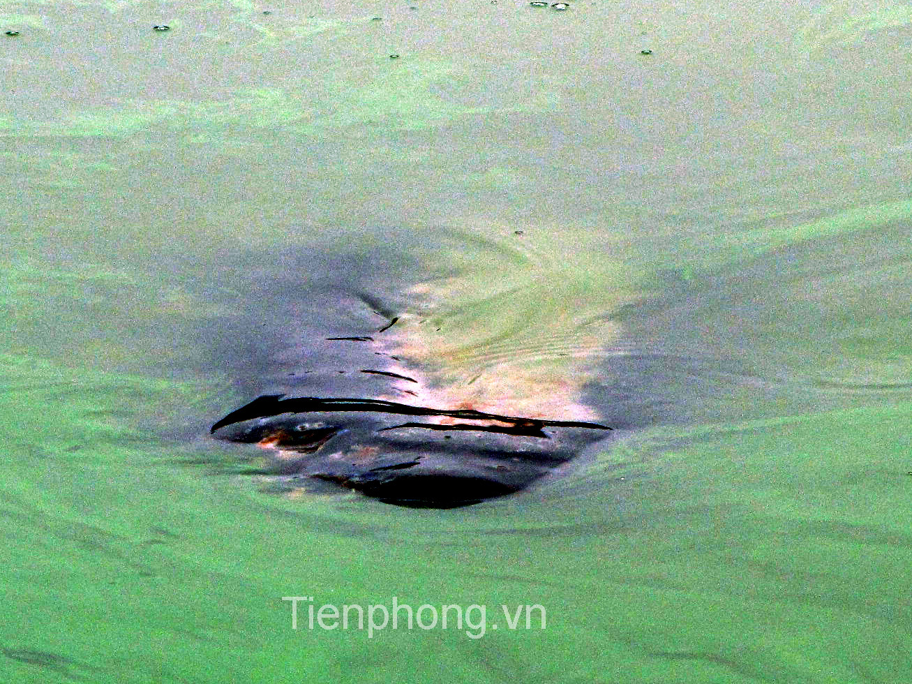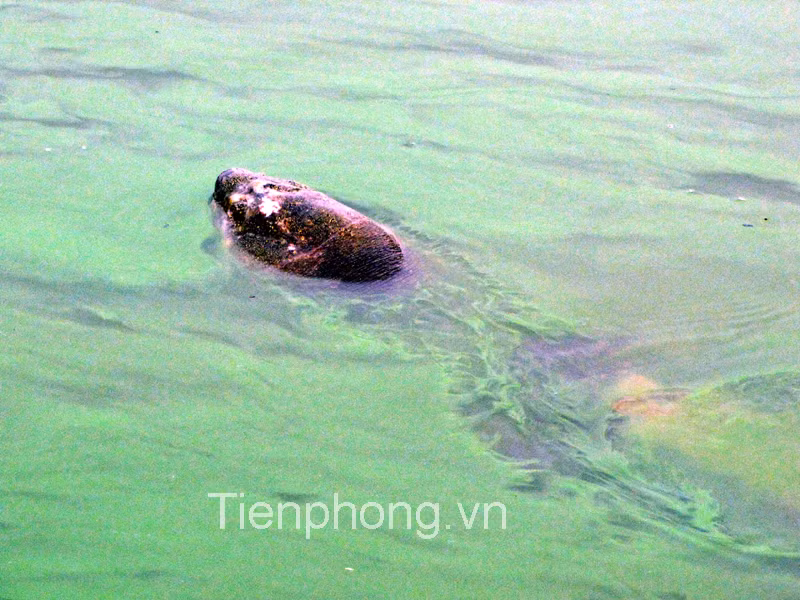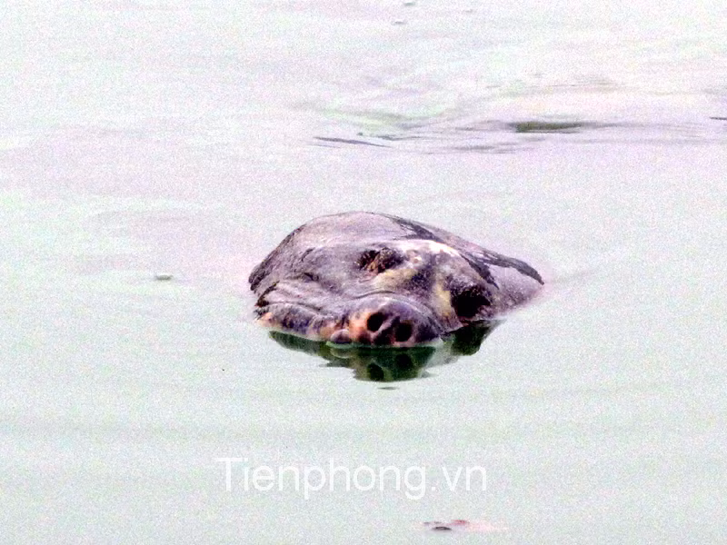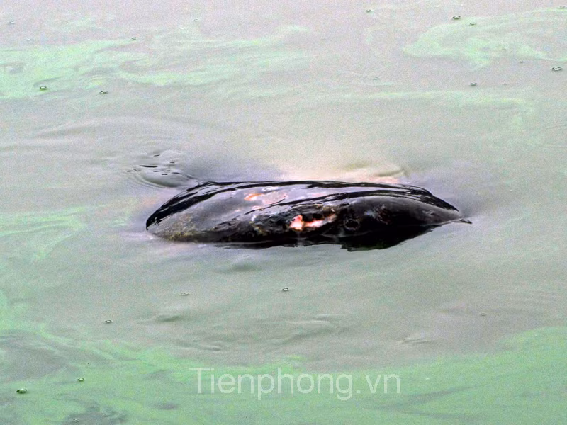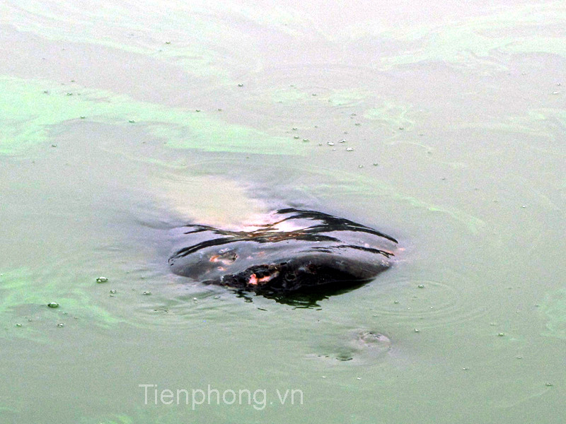 Cụ nổi sát bờ nên có thể thấy rõ vết thương trên mai và đầu.