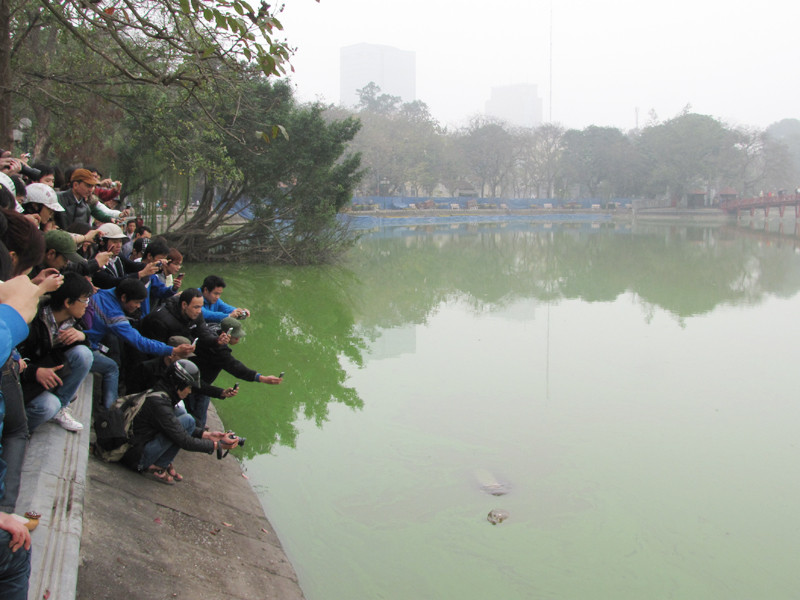 Sáng 5-3, cụ Rùa nổi hai lần nhưng ở phía xa. Đến 12h30, cụ tiến sát khu vực kem Thủy Tạ (đường Đinh Tiên Hoàng, Hà Nội), sau đó di chuyển gần sát bờ, vòng sang phía đền Ngọc Sơn. Hàng trăm người đổ xô tới để quay phim, chụp ảnh.