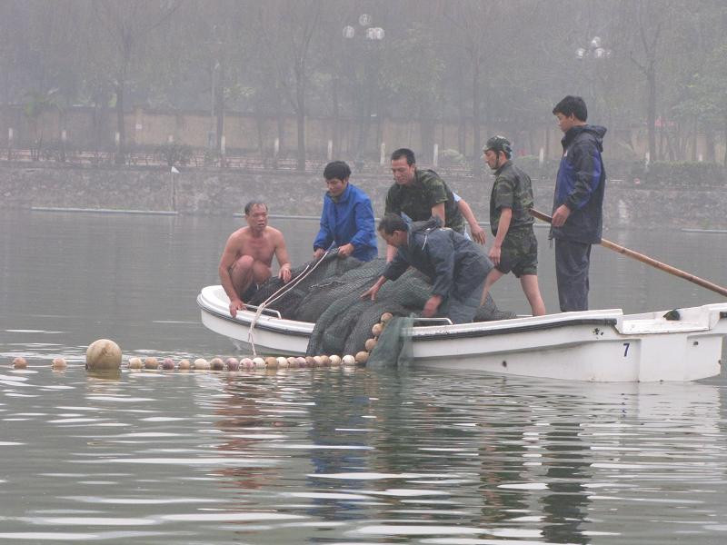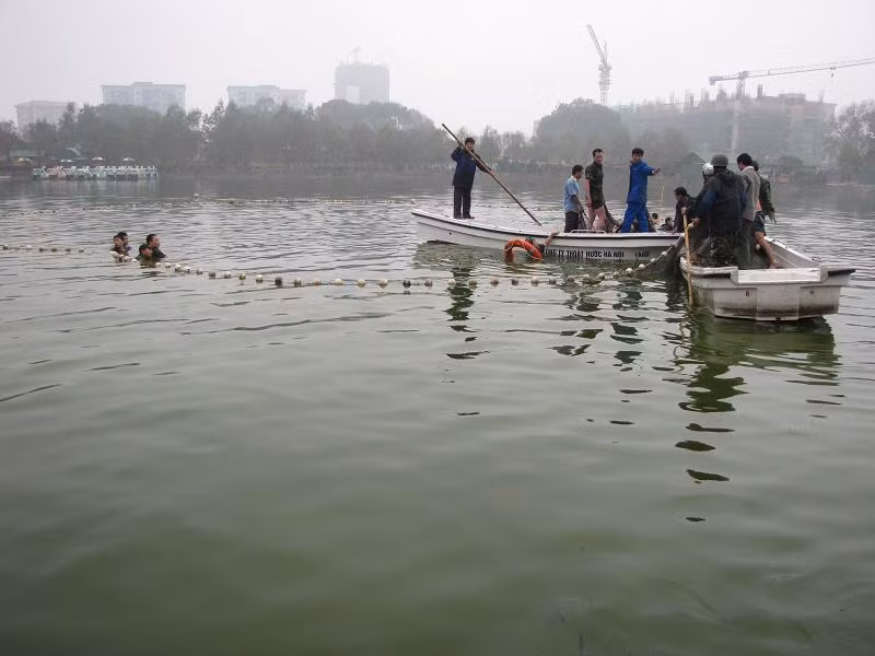 Diễn tập bắt cụ Rùa tại hồ Văn Quán, Hà Đông, Hà Nội