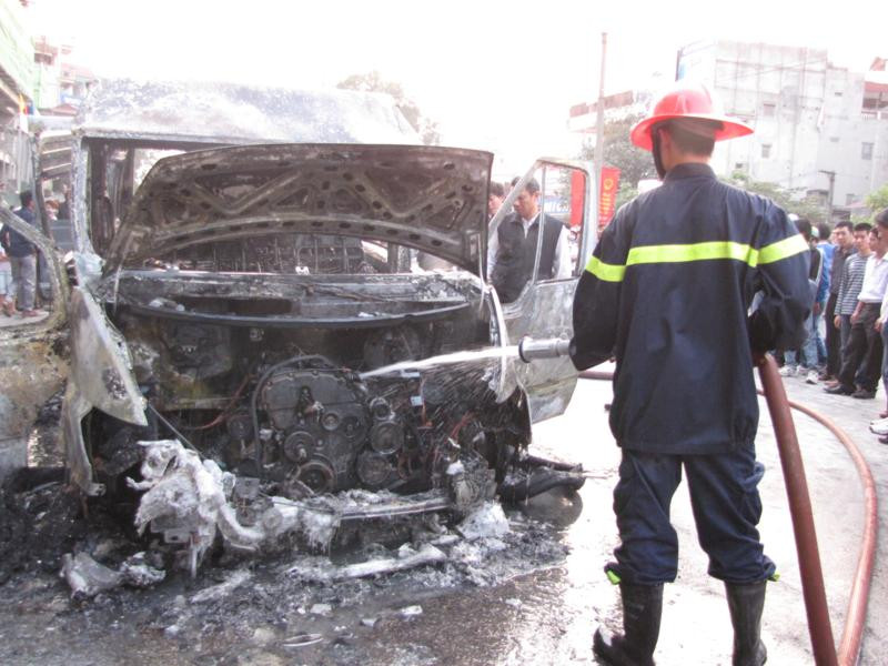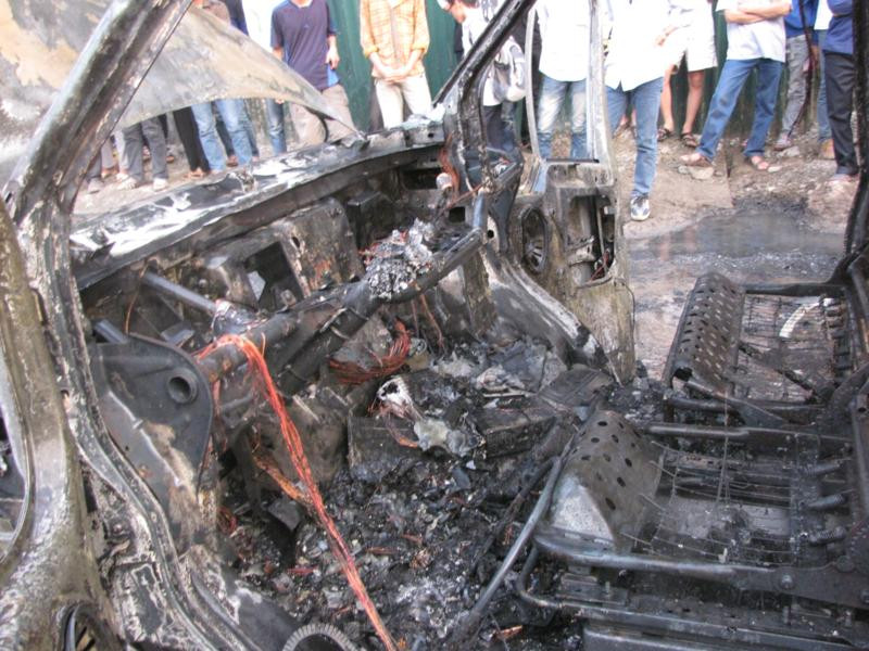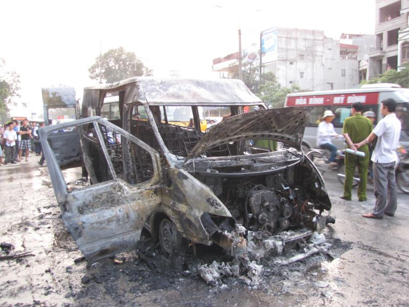 Xe đang chạy bỗng bốc lửa cháy rụi