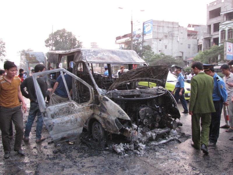 Ô tô 16 chỗ đang chạy bỗng bùng cháy
