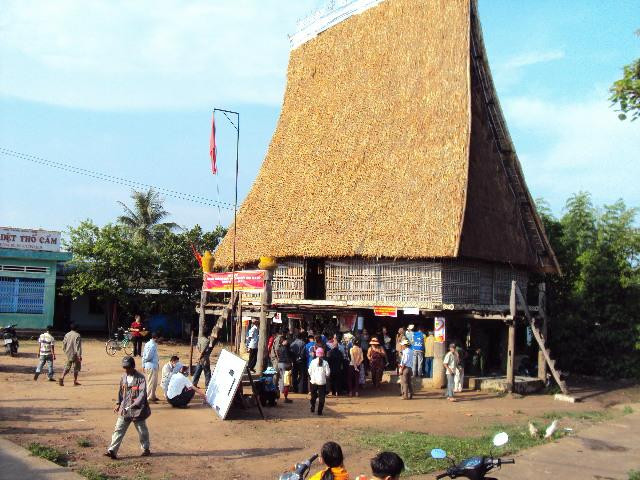 Dân làng Plei Tơ Nghia tập trung tại Nhà Rông để thực hiện quyền công dân của mình. Ảnh: Huỳnh Kiên