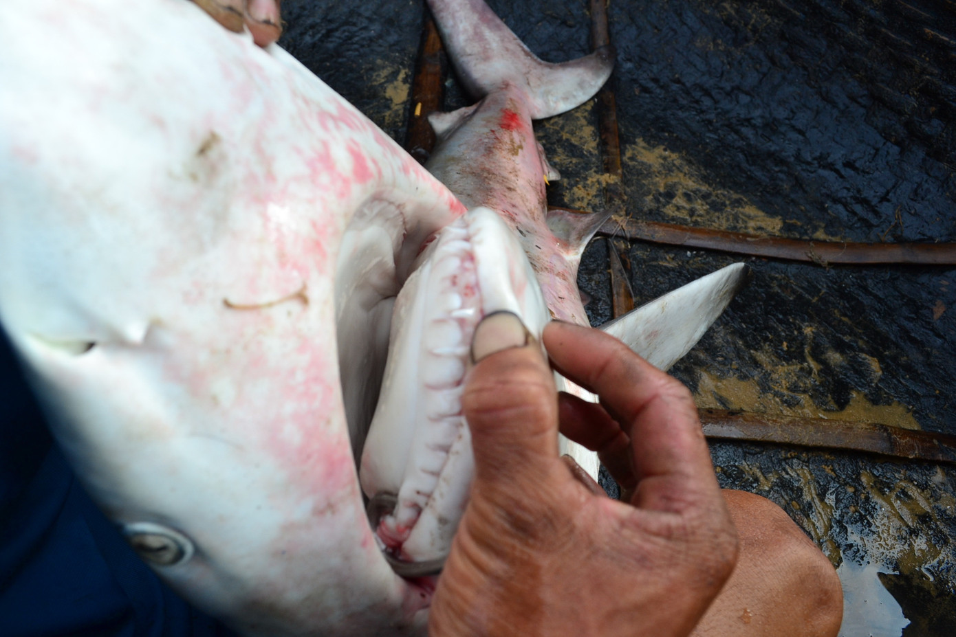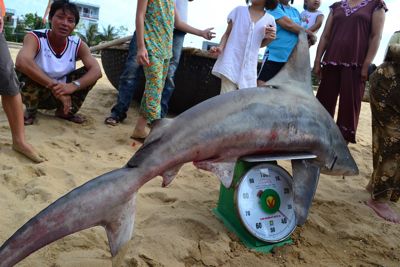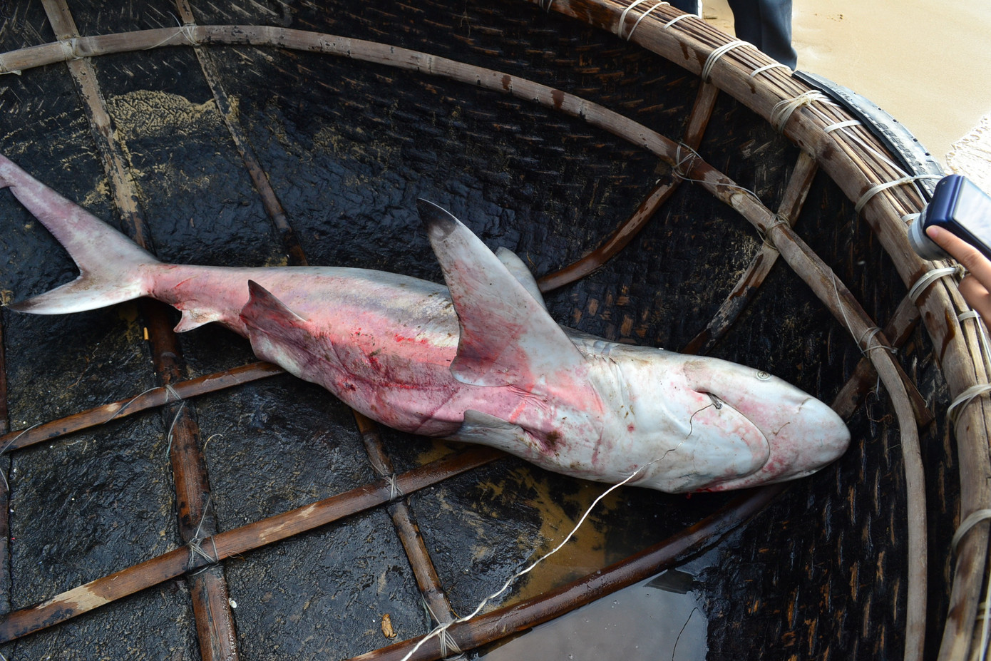 Theo anh Vũ, lần thứ 5 cá mập có cắn câu nhưng rồi bị sổng mất. Lần thứ 6 trong lúc đoàn đi thì bắt gặp nên đã chủ động bắt được. Đây là một loại cá mập thuộc họ cá dữ, có hai hàm răng sắc nhọn. Chúng tôi sẽ đưa về xử lý mẫu rồi ướp lạnh để tiếp tục ra biển thực hiện chuyến hành trình khảo sát, “truy sát” loài cá này sau đó mới đưa vào Nha Trang.