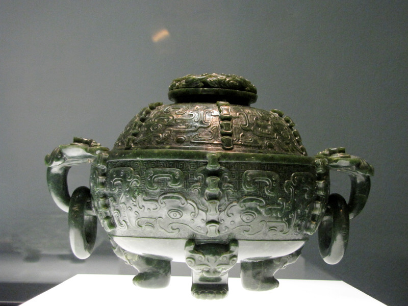 | Chiếc đỉnh làm bằng ngọc xanh xám sẫm, thời Nguyễn, đồ Cung đình Huế. |