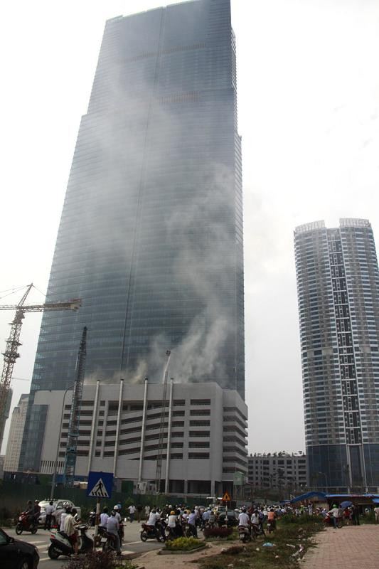 Một số công nhân ở đây kể lại, lửa bốc cháy từ tầng bảy của tòa nhà để xe. Trước đó, một số công nhân hàn xì ở đây. Sau khi phát lửa, một công nhân cố gắng dập lửa nhưng gió to khiến lửa cháy dữ dội và lan rộng. Khói bốc cao nghi ngút.