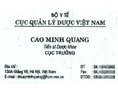 | Chứng chỉ “Licentiatexamen” và danh thiếp của ông Quang ghi học vị Tiến sĩ dược . Ảnh: Hữu Vinh |