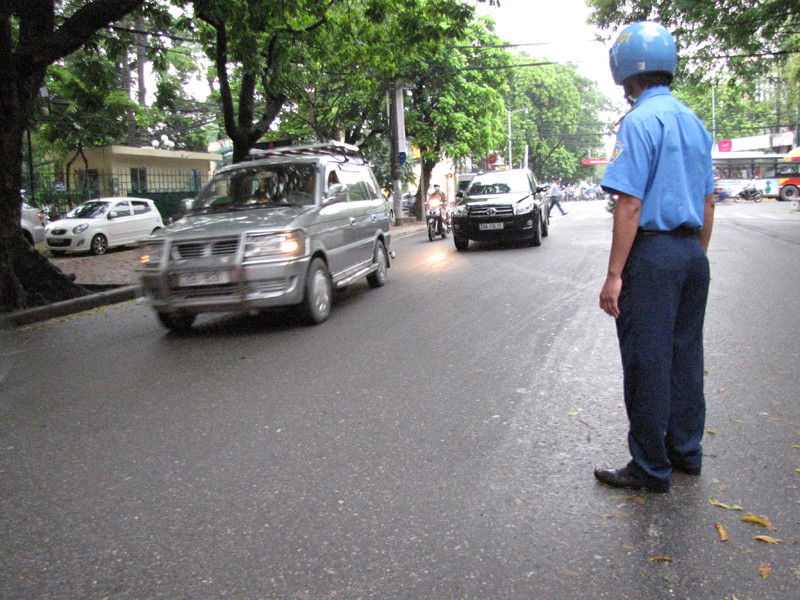 Để triển khai phân làn, hướng dẫn giao thông, lực lượng cảnh sát giao thông đã có mặt ở đầu hai tuyến phố, đồng thời bố trí ở mỗi điểm ngã tư hai nhân viên trật tự để chỉ dẫn các phương tiện.