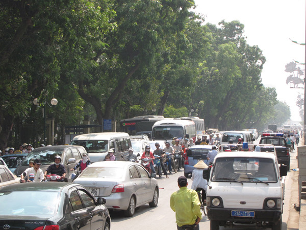Rất nhiều người tham gia giao thông tò mò dừng xe lại xem vụ tai nạn khiến giao thông trên cả hai chiều đường Lê Duẩn bị ách tắc nghiêm trọng.