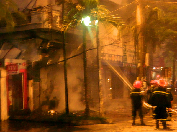 Nhiều người dân cho biết, khoảng 17 giờ, bỗng dưng có tiếng nổ lớn, rồi ngọn lửa bùng phát dữ dội tại quán tầm quất mát xa số 225 Trần Đăng Ninh. Ngay sau đó, hàng chục chiến sỹ và hai xe chuyên dụng của lực lược phòng cháy chữa cháy, công an quận (quận Cầu Giấy) đã có mặt tại hiện trường để khống chế ngọn lửa.
