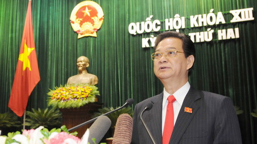 Thủ tướng Nguyễn Tấn Dũng trình bày báo cáo của Chính phủ về kế hoạch kinh tế - xã hội 2011-2012 - Ảnh: Tuổi Trẻ.