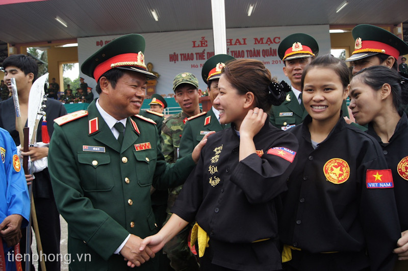 Tổng Tham mưu trưởng QĐND Việt Nam Đỗ Bá Tỵ động viên các cô gái đến từ CLB Võ thuật –