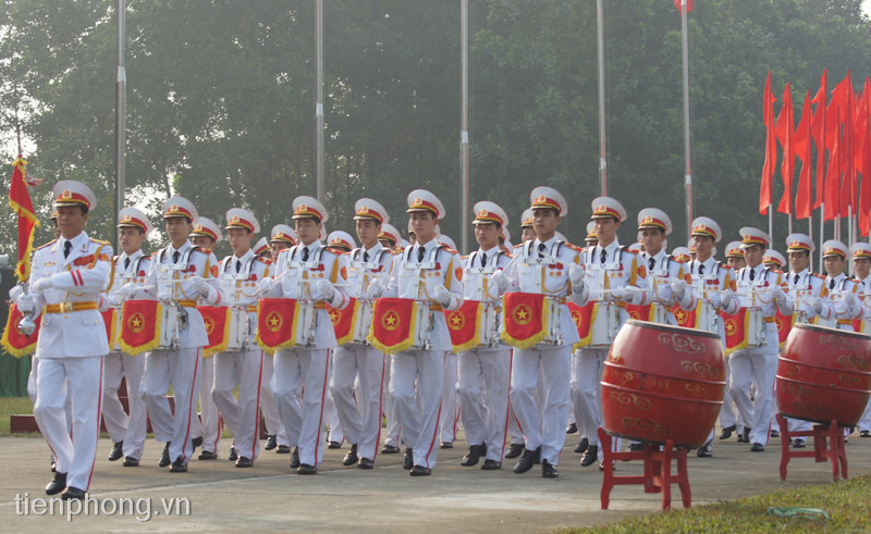 Khối chiến sĩ Danh dự biểu diễn với súng trong tiếng Quân nhạc