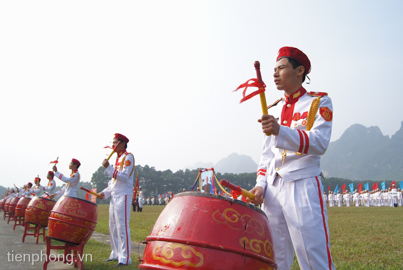 Đoàn Nghi lễ Quân đội trong trang phục bắt mắt biểu diễn trống hội