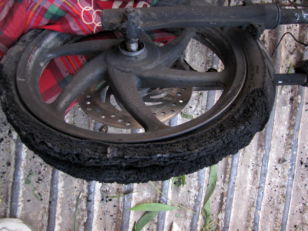 Ngay sau đó, người dân gần đó mang nước dập lửa, nhưng không kịp, chiếc xe bốc cháy ngùn ngụt. Khi lực lượng cứu hỏa và công an phường Thượng Đình dập được lửa, xe chỉ còn... khung.