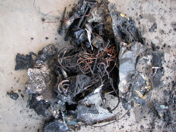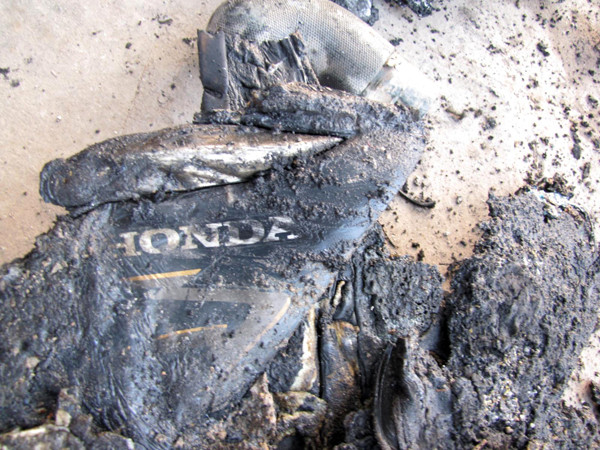 | Hiện trường chiếc xe bị cháy. Ảnh: Tuấn Nguyễn |