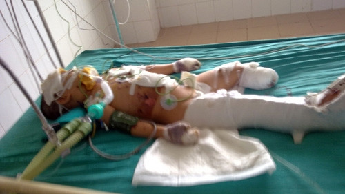 > Cháu bé nạn nhân vụ nổ xe máy đang nguy kịch