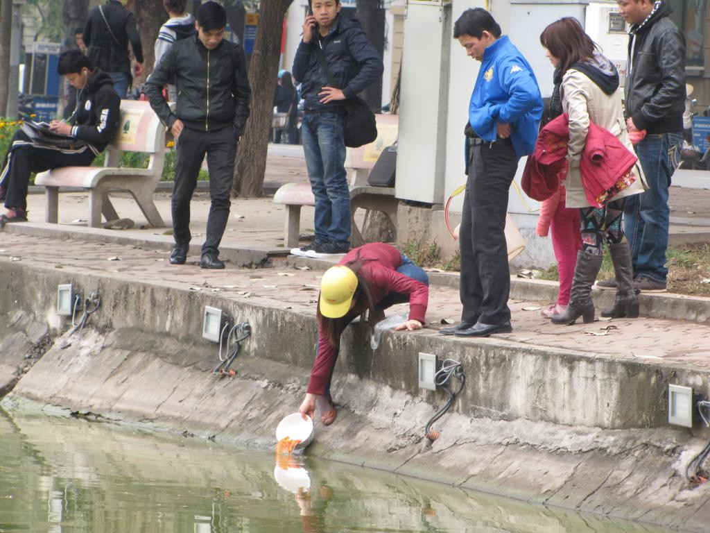 TPO – Hàng loạt cá chép bị chết, tro bụi vàng mã, được thả xuống các hồ nước, sông Hồng (khu vực Hà Nội) trong ngày 23 tháng Chạp – ngày ông Táo về trời.