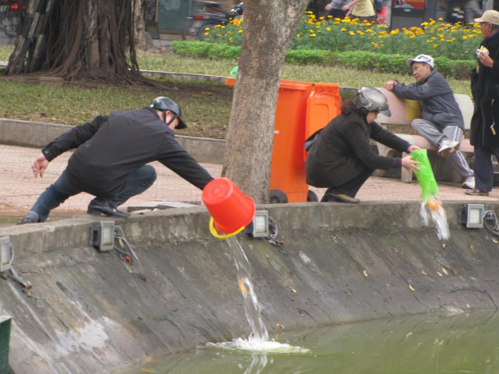 Chùm ảnh phóng sinh cá chép ngày ông Táo tại Hà Nội: