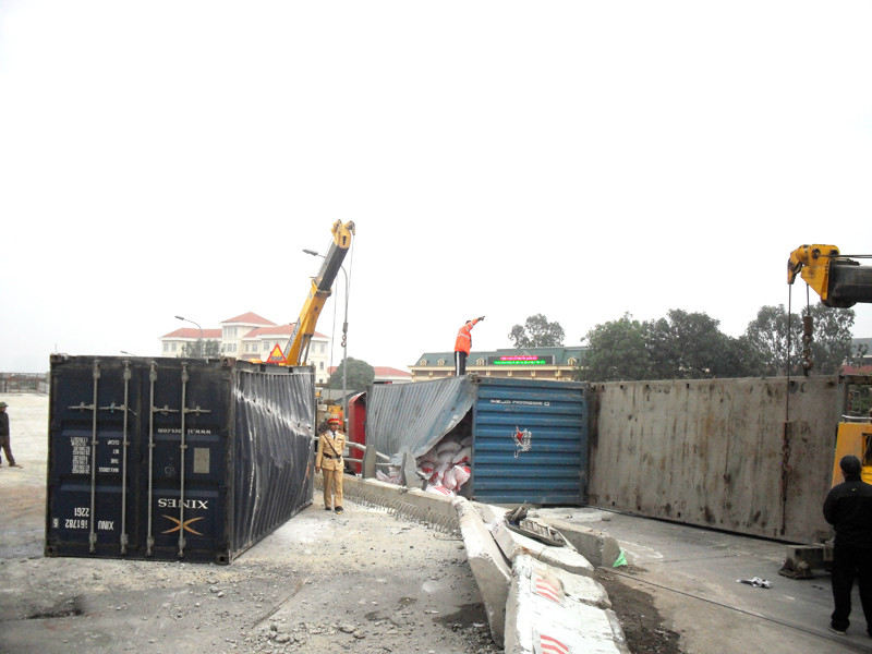 Sau khi xảy ra sự cố, lực lượng CSGT đã có mặt để giải quyết vụ việc. Đội cứu hộ giao thông 116 đưa xe cứu hộ chuyên dụng đến cuẩ chiếc xe bị nạn về bãi kho của công an huyện Thanh Trì. Đến 9h sáng nay, gạo trong hai container được chuyển sang xe khác và đi ngay sau đó, giải phóng cho cầu Pháp Vân.