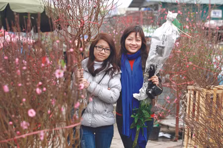 Đào, thược dược, lay-ơn, quất cây... bắt đầu được dạt dần từ các làng hoa ngoại thành về mạn Hàng Lược, Đồng Xuân trên xe đạp thồ hay xích lô...