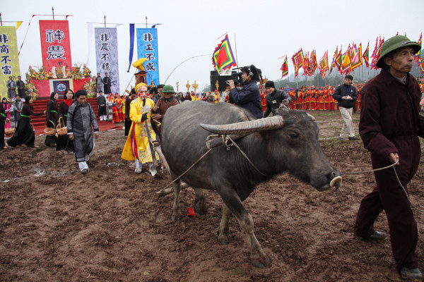 Sau nghi lễ dâng hương, Chủ tịch nước Trương Tấn Sang xắn quần, đi chân đất, khai mở những sá cày đầu tiên, rắc hạt giống trong tiếng vỗ tay của đông đảo người dân.