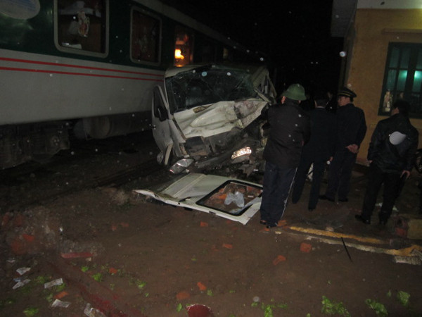 > Tàu đâm ô tô đi lễ chùa, năm người thương vong