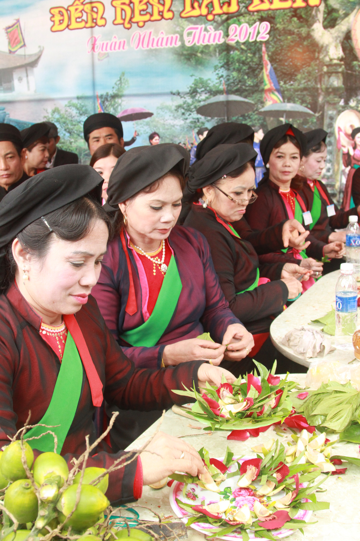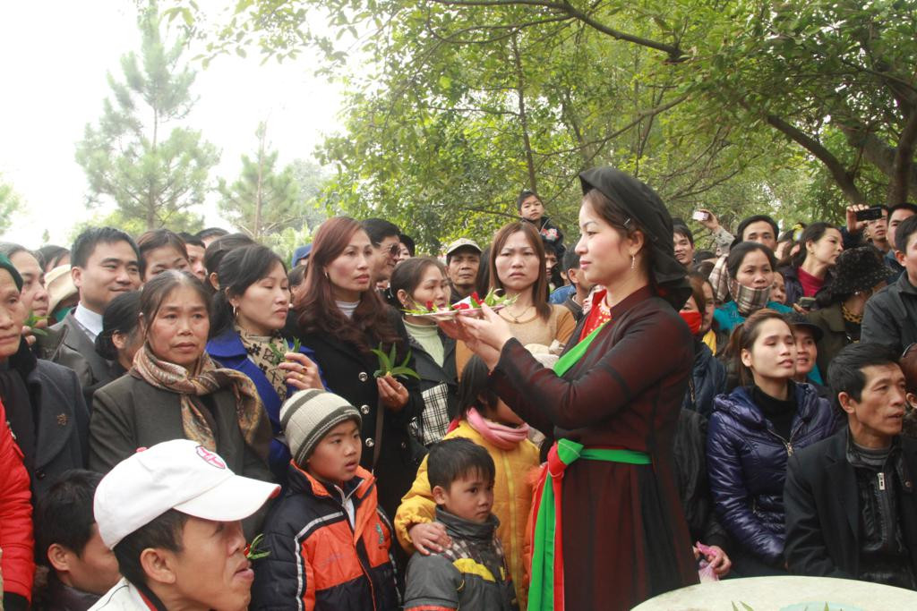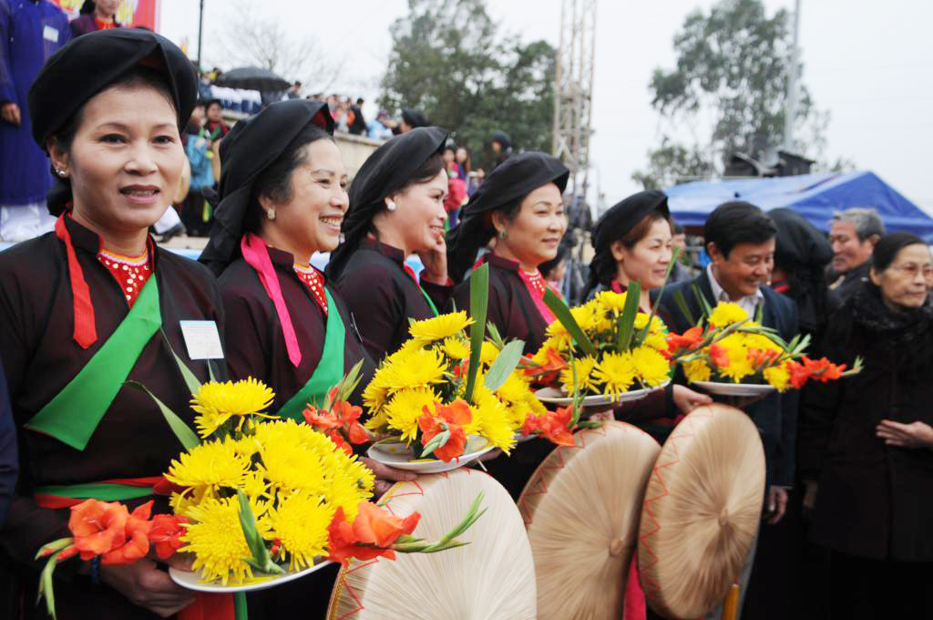 | Têm trầu mời khách, hát quan họ giao duyên. |