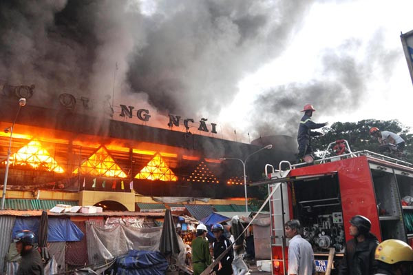 Cảnh sát PCCC phòng cháy chữa cháy Quảng Ngãi đã huy động toàn bộ lực lượng, phương tiện của đơn vị và phương tiện, lực lượng cứu hoả của Công ty Lọc hoá dầu Bình Sơn có mặt tại hiện trường để tham gia chữa cháy. Tuy nhiên, do ngọn lửa quá lớn và lối vào tiếp cận khu vực cháy hẹp do tiểu thương dựng kiôt tạm để buôn bán nên đến 8h30 phút ngọn lửa mới cơ bản dập tắt.