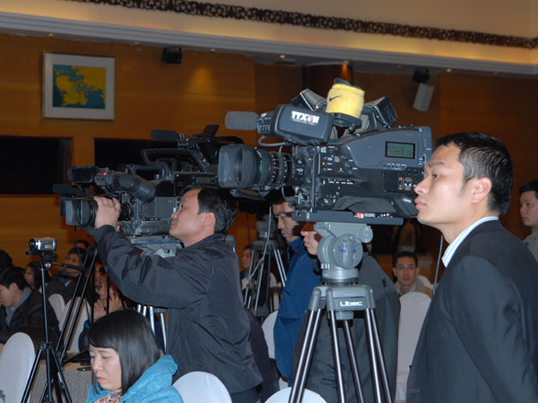 | Nhiều nhà báo quan tâm đến vụ cưỡng chế thu hồi đất tại Tiên Lãng. Ảnh: Minh Đức |