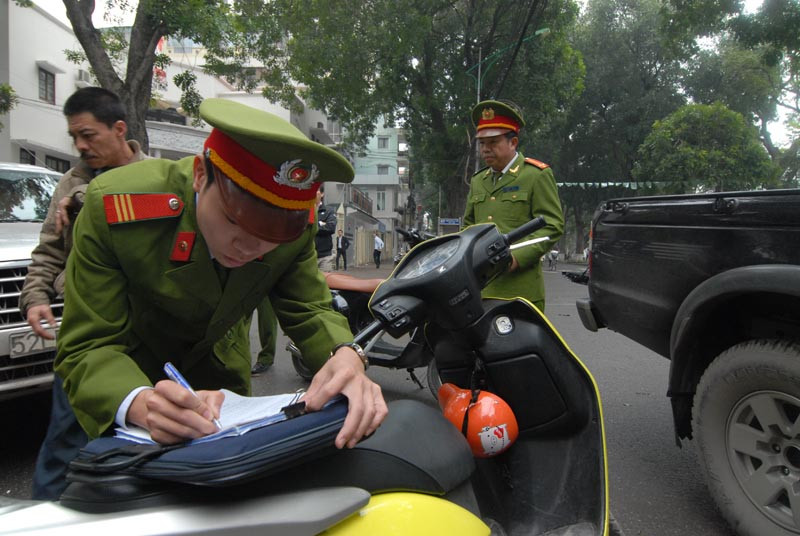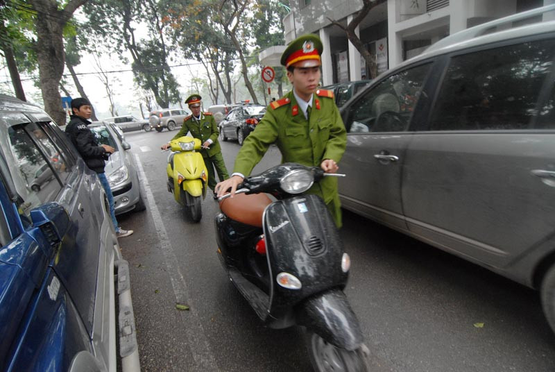Các tuyến đường như Lê Thái Tổ, Lê Duẩn (quận Hoàn Kiếm) Nguyễn Đình Chiểu (Hai Bà Trưng), Ngọc Khánh, Phan Kế Bính (Ba Đình), Láng Hạ, Quốc Tử Giám (Đống Đa), Hoàng Quốc Việt, Lê Văn Lương (Cầu Giấy)…, xe máy, ô tô vẫn đỗ ngổn ngang như trước khi chưa có lệnh cấm.