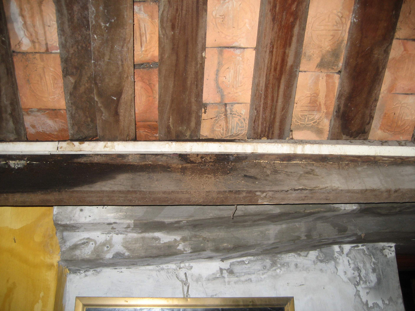 Một số vì kèo cũng bị mủn do ảnh hưởng của mưa dột lâu ngày. Ảnh chụp chiều 22-8