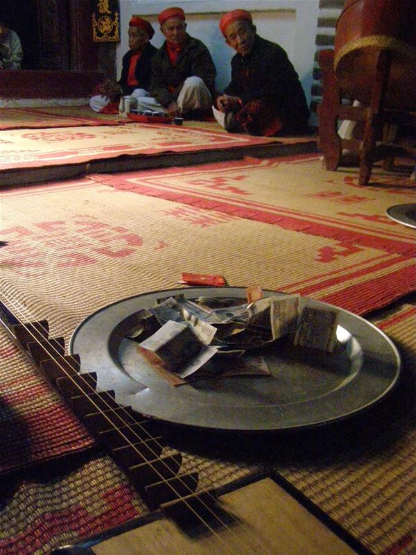 Chúng tôi đến vào lúc chiều tối, khi mọi việc tế tự đã xong. Trong đình các cụ cao niên đang ngồi chờ cỗ bưng lên